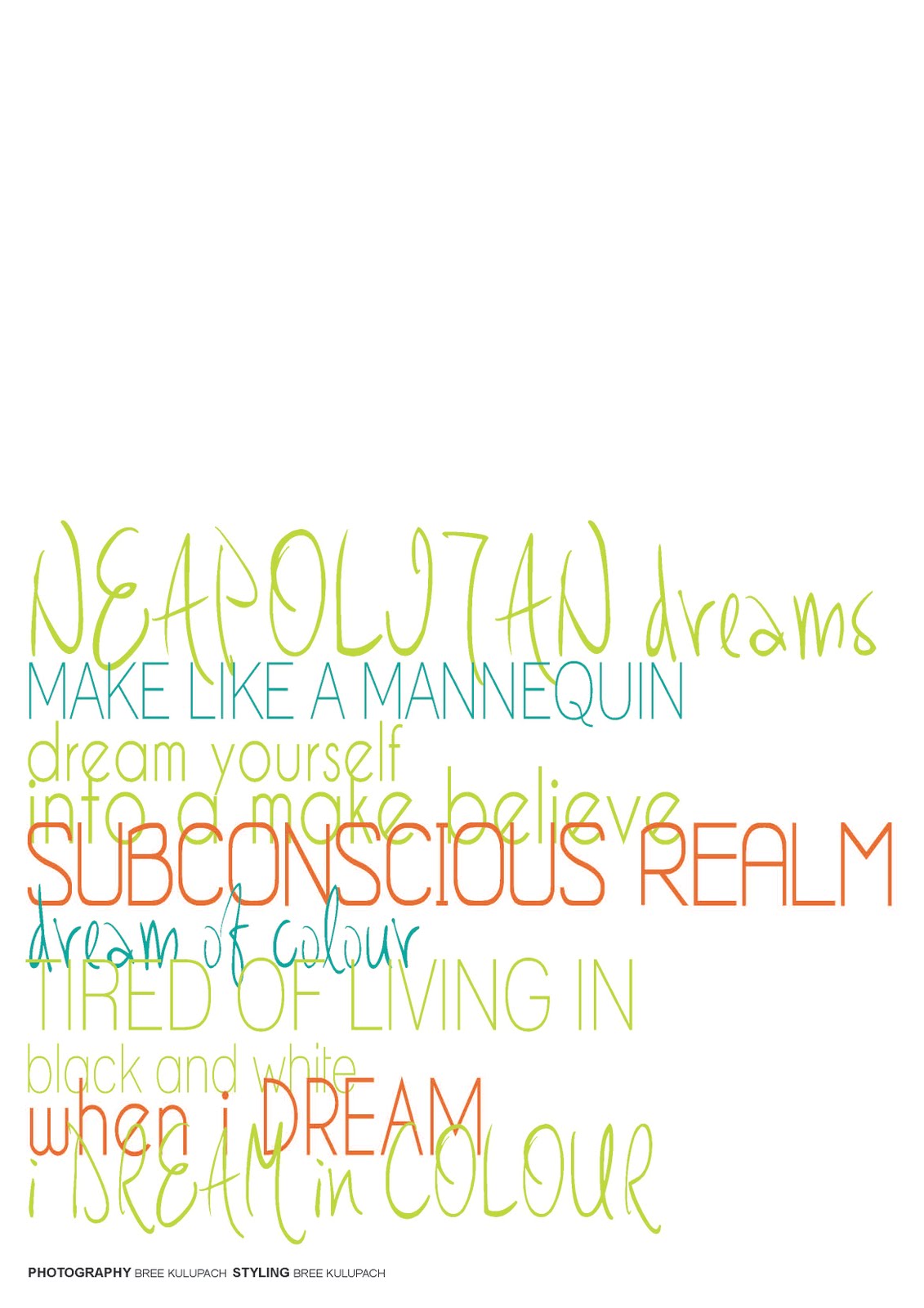 Below is a styling project I completed focusing on colour as the main concept behind the editorial. Styling and photography by myself.